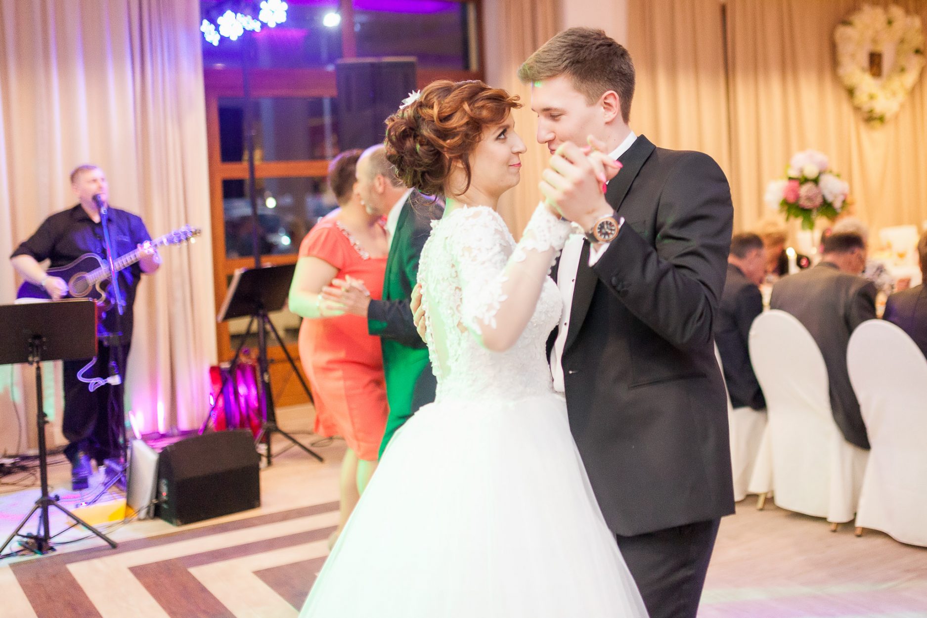 Przygotowania i wesele odbyło się we wspomnianym hotelu, a ślub Młoda Para wzięła w urokliwym, drewnianym kościółku. Wesele było bardzo huczne, z dużą ilością gości, którzy pełni energii skutecznie zapełniali parkiet, gdy tylko zespół zaczynał grać.