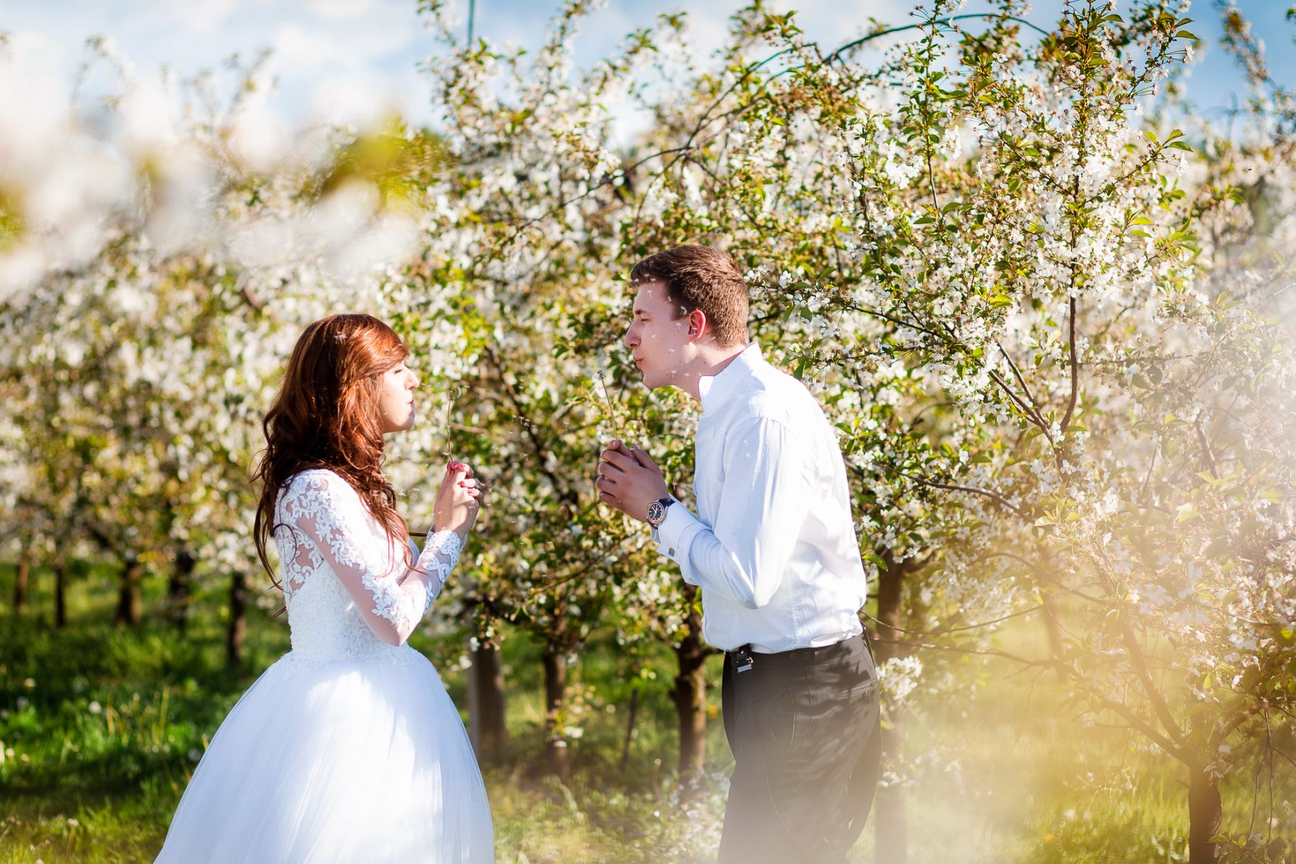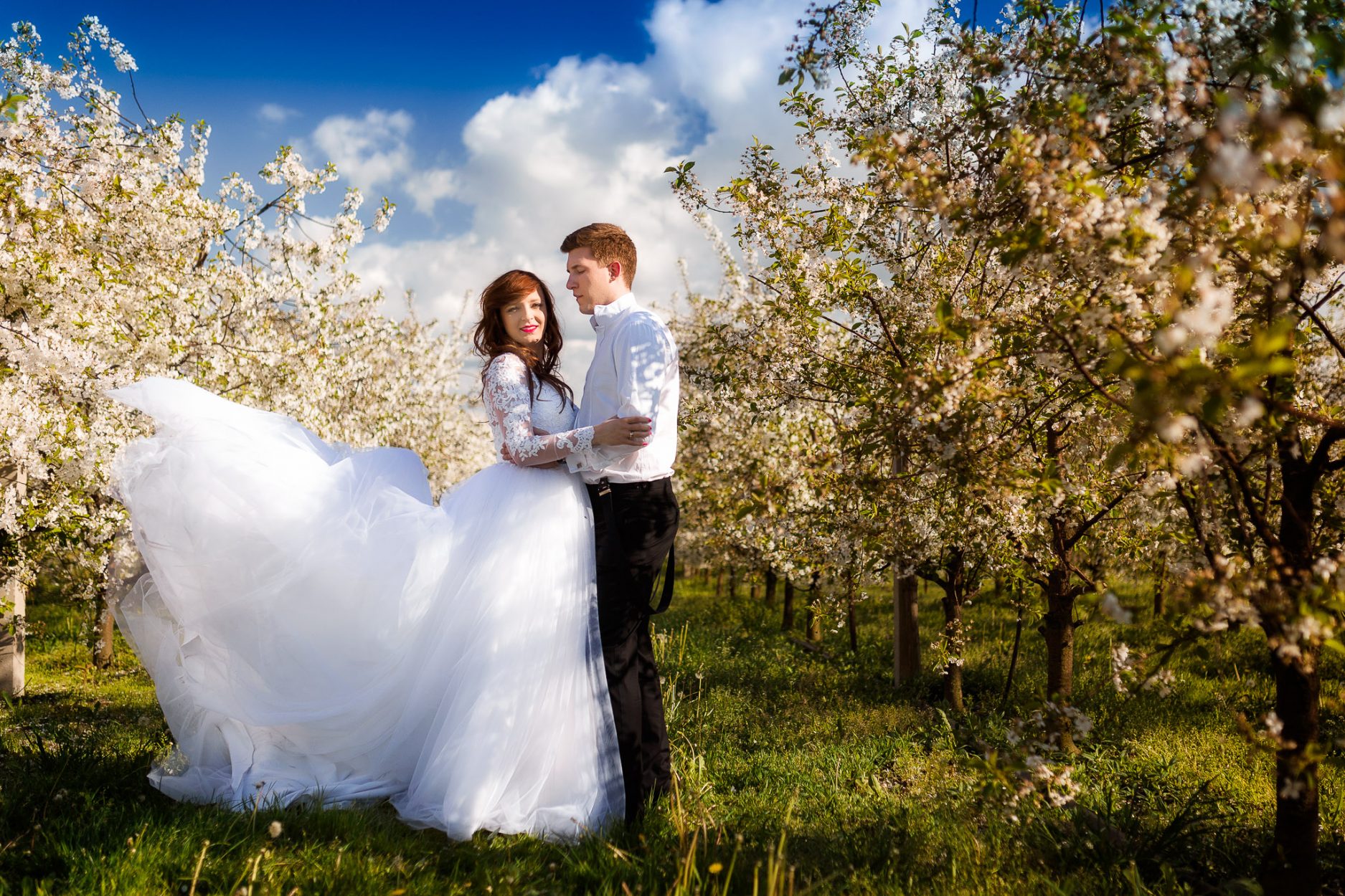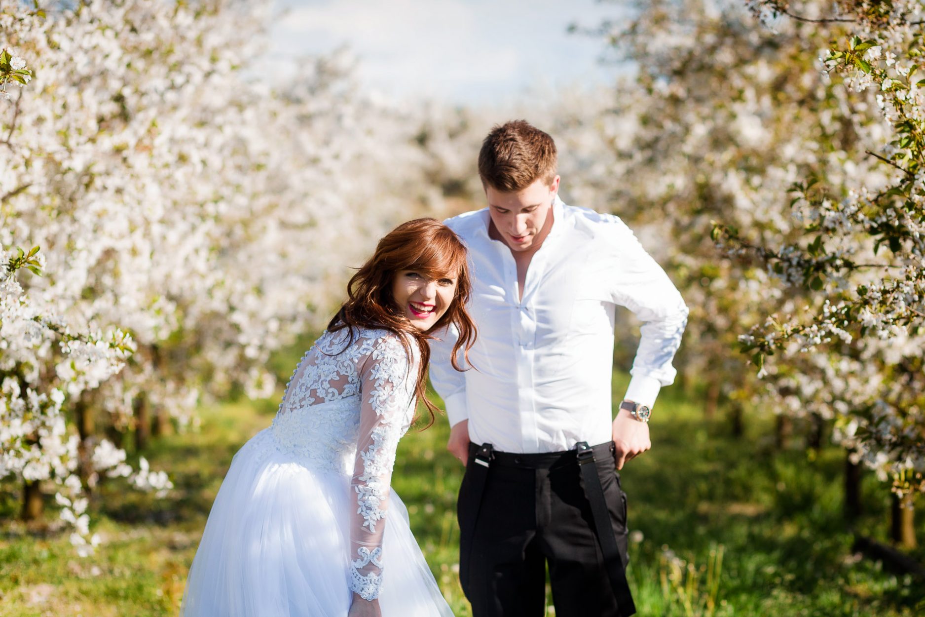 Kilka dni po ślubie Karolina i Norbert zabrali nas w okolice Warszawy, gdzie spacerując po pięknych terenach sadu wiśniowego oraz ogrodu parkowego udało nam się uchwycić wiele kadrów, także tych skompanych w świetle zachodzącego słońca.